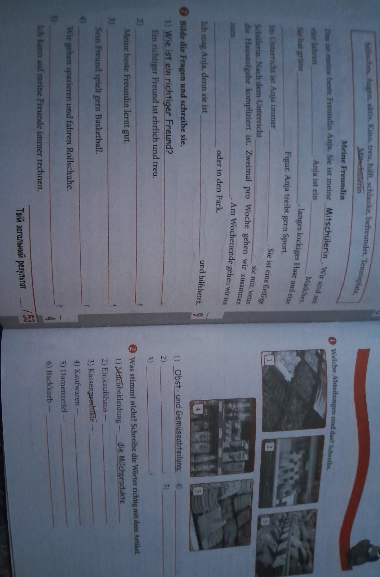 Das ist meine beste Freundin Anja. Sie ist meine Mitschülerin. Wir sind seit vier Jahren befreundet. Anja ist ein hübsches Mädchen. Sie hat grüne Augen, langes lockiges Haar und eine schlanke Figur. Anja treibt gern Sport. Im Unterricht ist Anja immer aktiv. Sie ist eine fleißige Schülerin. Nach dem Unterricht hilft sie mir, wenn die Hausaufgabe kompliziert ist. Zweimal pro Woche gehen wir zusammen