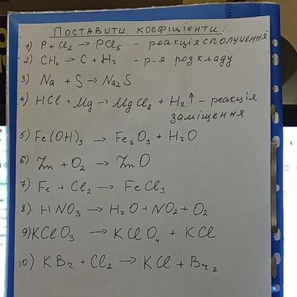 1) 2P + 5Cl2 = 2PCL5