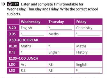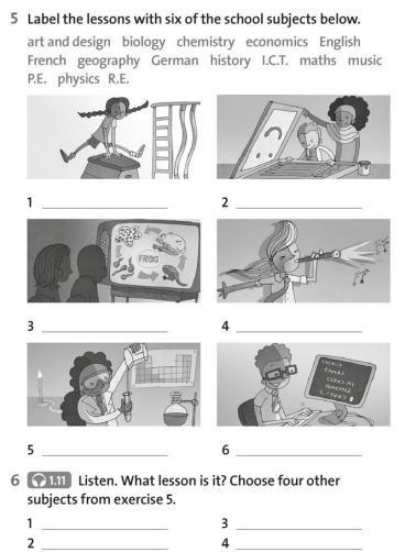 1.PE 2.art design 3.biology4.music5.chemistry6.PE .