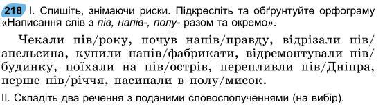 чекали пів року,почув напівправду, відрізали пів апельсину,купили напівфабрикати, відремонтували пів будинку,поїхали на півострів,перепливли пів Дніпра,перше півріччя,насипали в полу мисок.