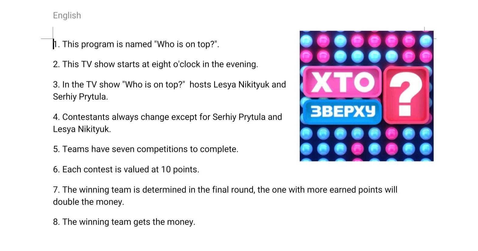 Программа "Хто зверху". После того как сделайте мне презентацию вставте ссылку иле файл.