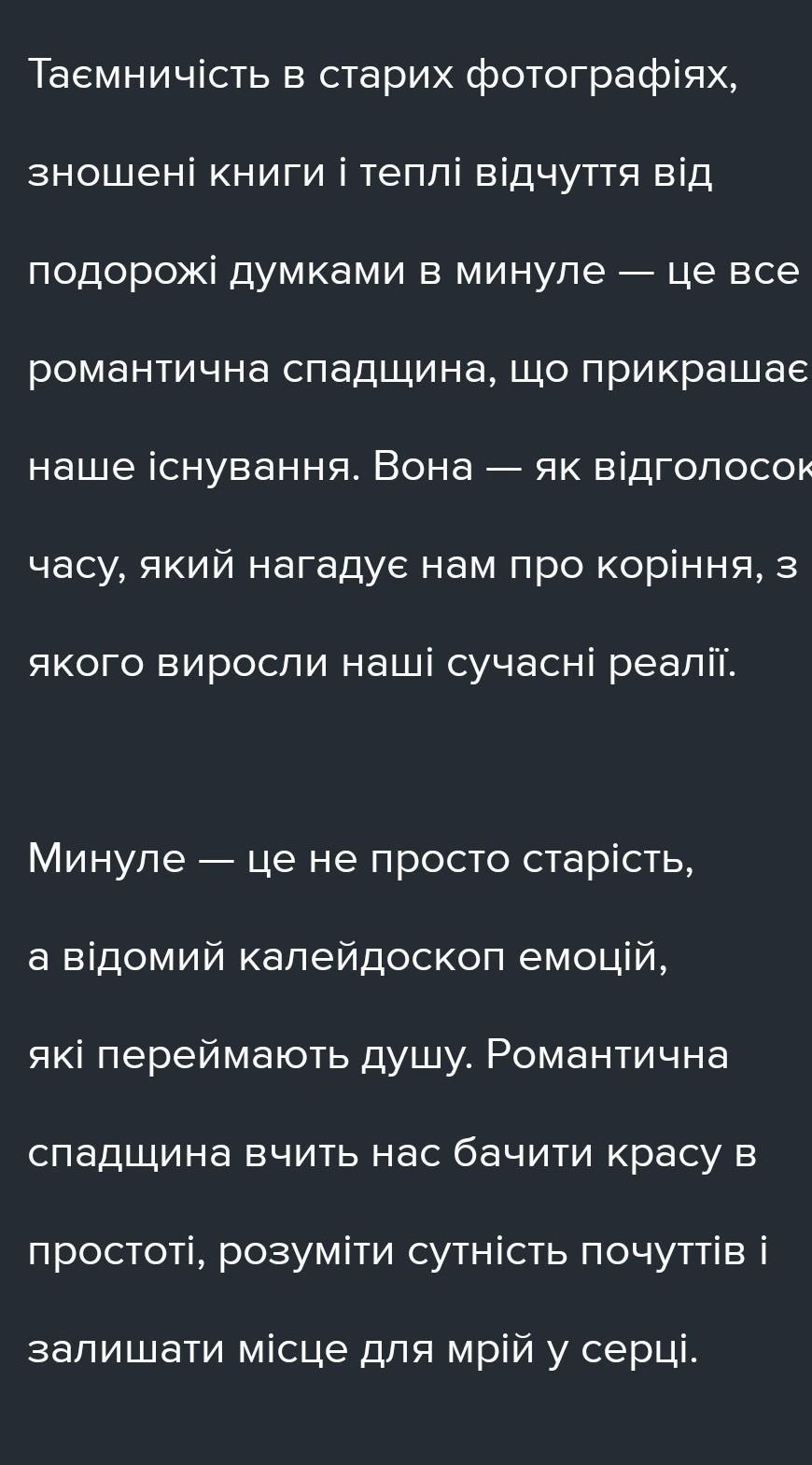 Дам 40 балів! Написати твір на тему «чи потрібна нам романтична спадщина минулого?»