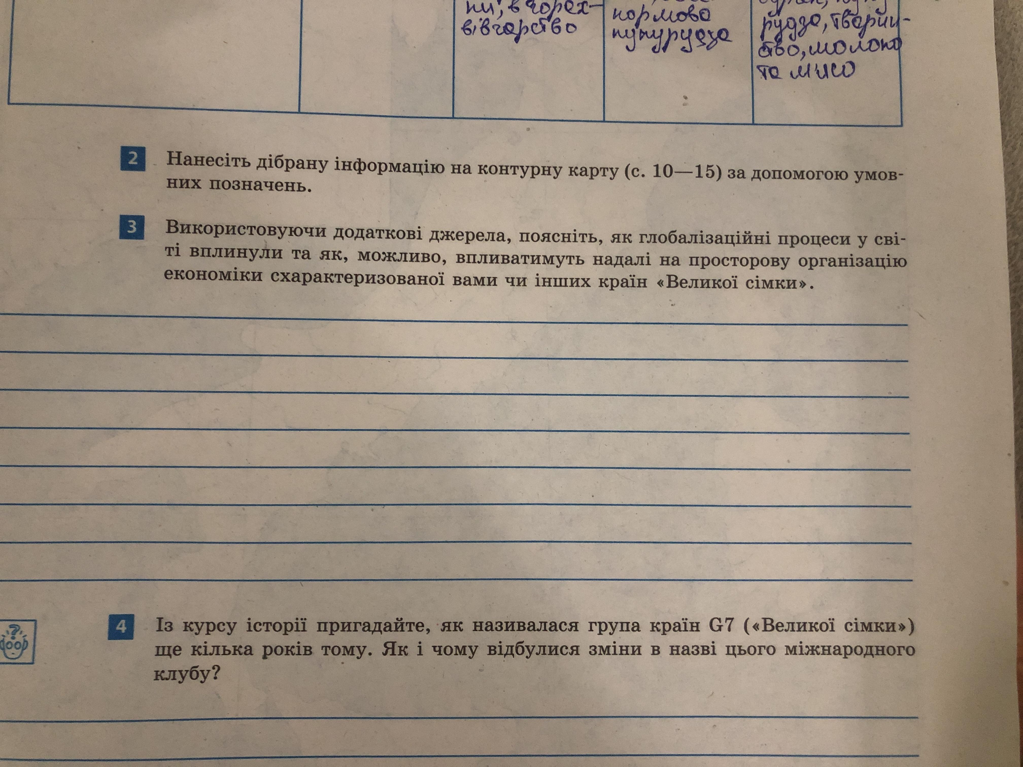 Використовуючи додаткові джерела, поясніть, як глобалізаційні процеси у сві- ті вплинули та як, можливо, впливатимуть надалі на просторову організацію економіки схарактеризованої вами чи інших країн «Великої сімки».