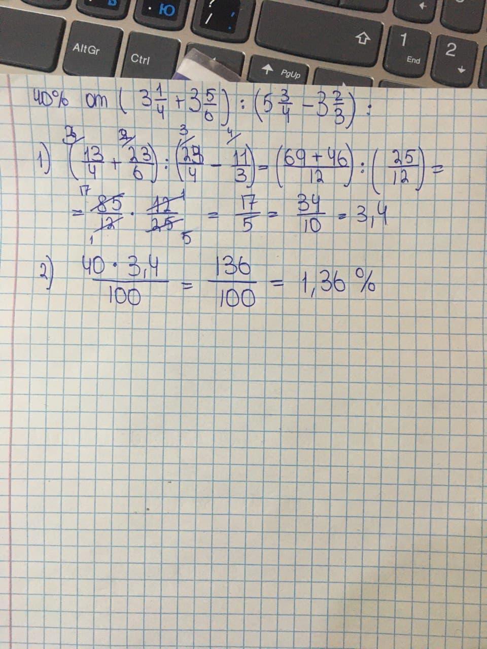 Первое находим первый дейсвием значение выражения, а потом уже процент