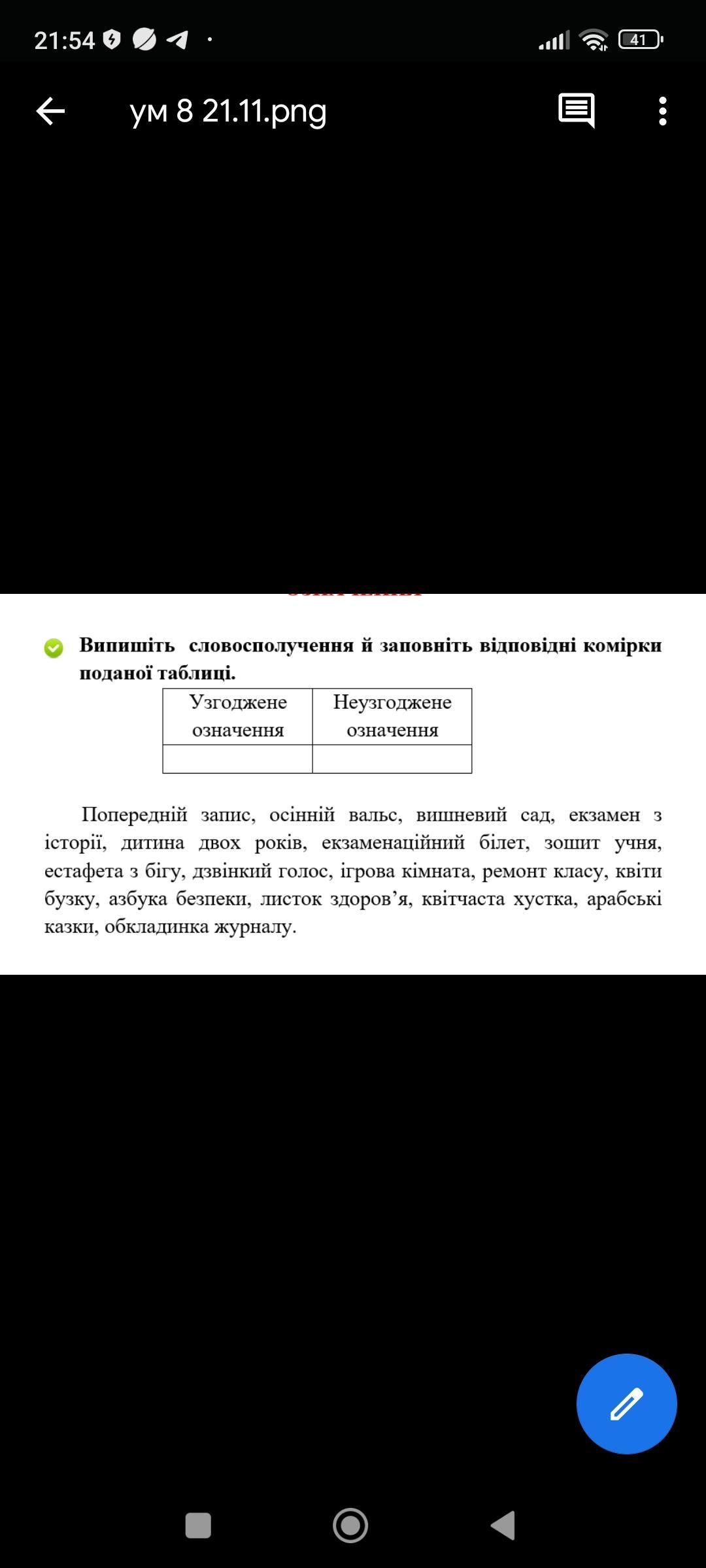 У. О. Попередній запис, осінній вальс, вишневий сад, екзаменаційний білет, дзвінкий голос, ігрова кімната, квітчаста хустка, арабські казки. Все інше відноситься до неузгодженного означення.