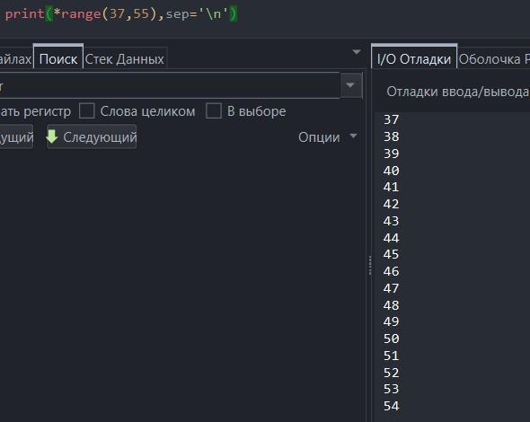 Скласти програму , яка виводить на екран числа від 37 до 54
