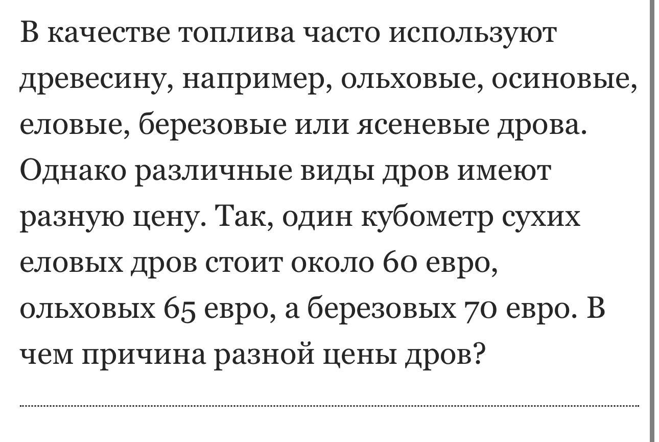 У березы самая высокая теплота сгорания (из представленных образцов) потому и цена самая большая. У ели самая низкая.