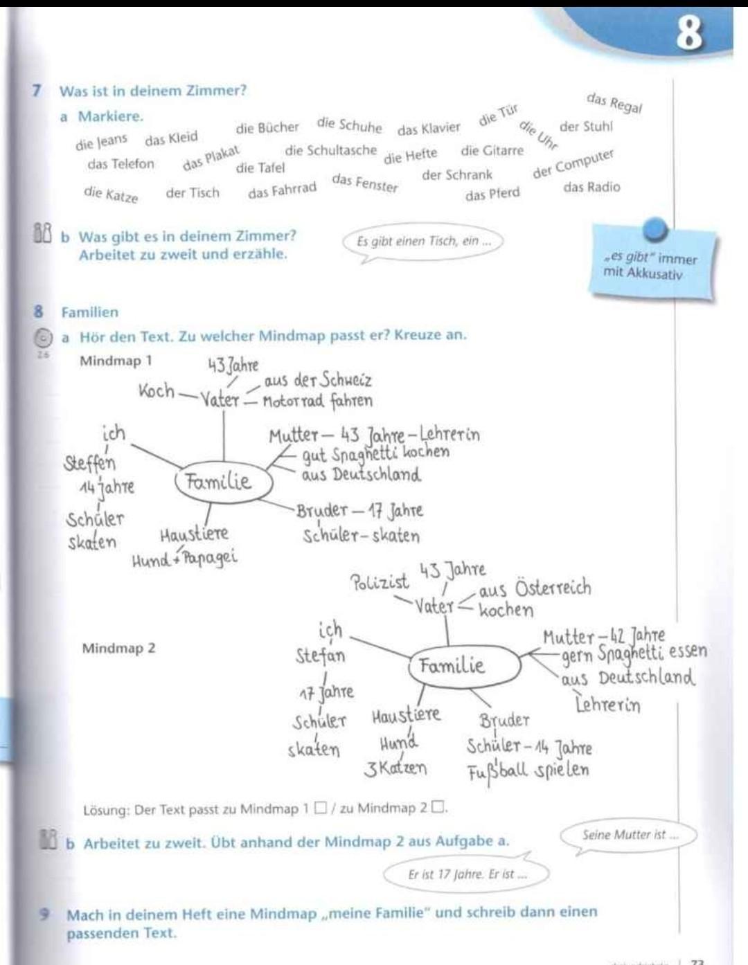 Üb. 9 Сделайте свою карту разума в тетради по примеру из 8а на тему "Meine Familie"