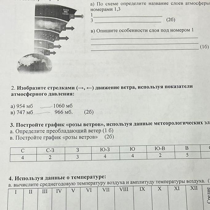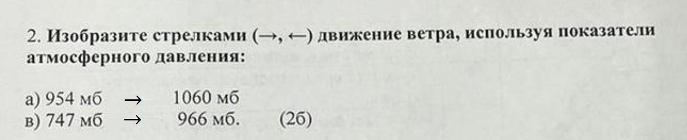 2. Изобразите стрелками (→, ←) движение ветра, используя показатели