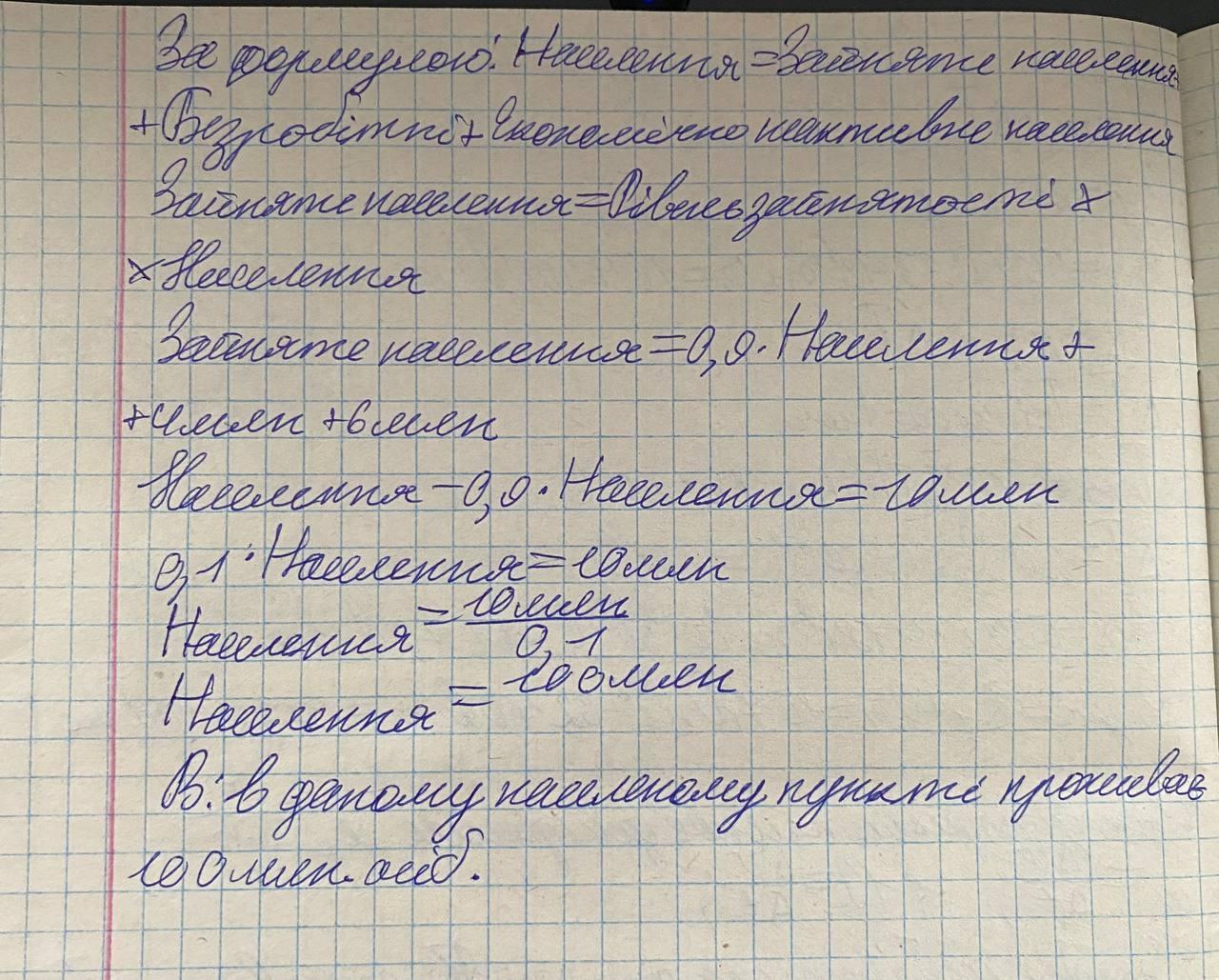 Визначте кількість осіб, що проживають у населеному пункті, якщо кількість економічно неактивного населення 6 млн. осіб, рівень зайнятості - 90%, кількість безробітних - 4 млн. осіб
