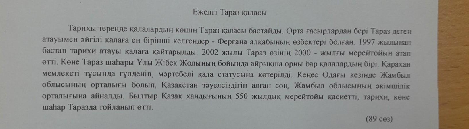 2-тапсырма. Мәтiндi екiншi рет тындап, мәтiннiн мазмұнын ашатын ашатын тірек сөздерді жазыңы