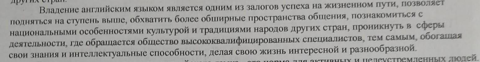 подняться на ступень выше, обхватить более обширные пространства общения, познакомиться с национальными особенностями культурой и традициями народов других стран, проникнуть в сферы деятельности, где обращается общество высококвалифицированных специалистов, тем самым, обогащая свои знания и интеллектуальные способности, делая свою жизнь интересной и разнообразной.
