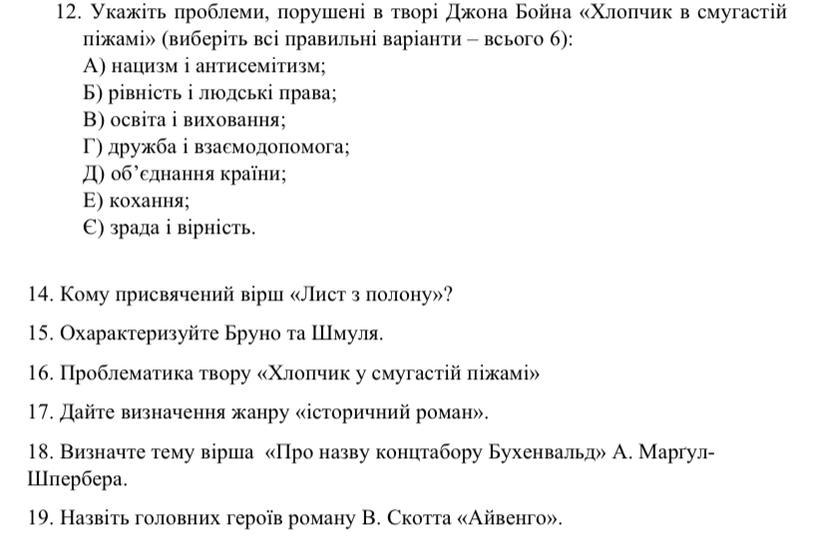 16)Геноцид,нацизм, антисемітизм,рівність та людські права,дитинство, відповідальність людей за їхні вчинки,дитяча дружба.