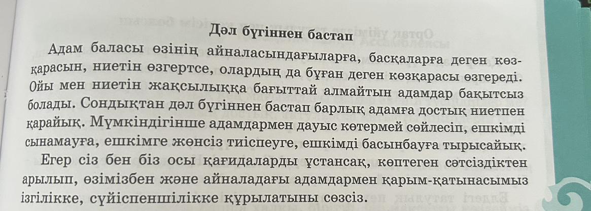 Автордың идеясын қандай көңіл күймен қабылдыңыздар. Қандай ой айтылған? 3 сөйлеммен жазыңыздар/Идею автора каким настроением восприняли напишите в виде 3- предложений
