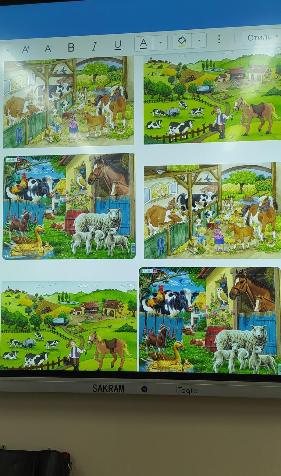 Ответ: this is a village. the first picture - two cows, two calves, one goat, one horse, nine birds, two cats. seventeen animals in total.