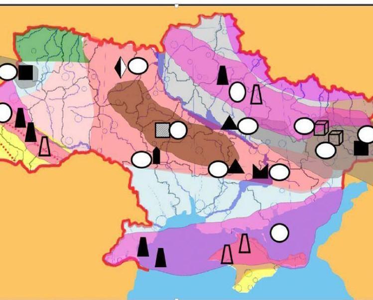 - Ми з'єднали назви басейнів, районів, родовищ корисних копалин з ї місцем знаходження на карті.