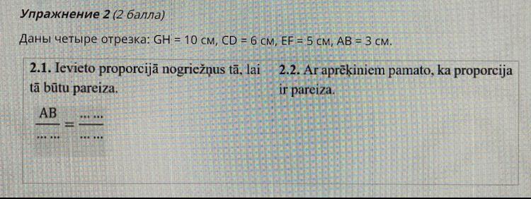 2.1. Вставтье сегменты в соотношение, чтобы оно было правильным