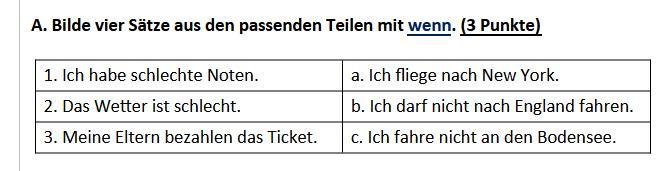 A. Bilde vier Sätze aus den passenden Teilen mit wenn. (3 Punkte)