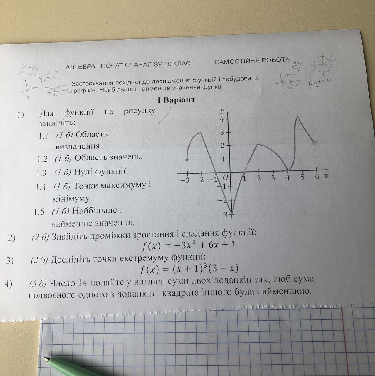 1.4. Точка максимуму: 5. Точка мінімуму: 0.