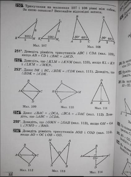 255 – равенство треугольников по этой же теореме, так как вертикальные углы в точке О равны.