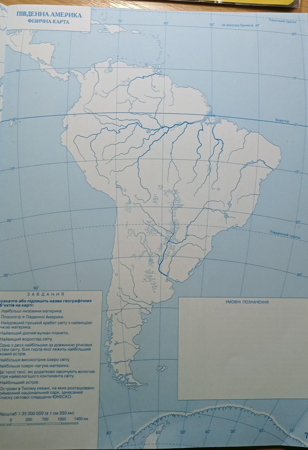 контурна карта географія. "материки і океани" 7 клас (ст 7)