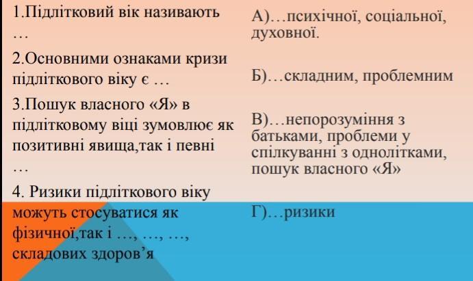 відповідь: 4-А, 3-Г,2-В, 1-Б