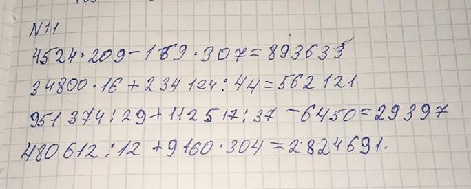 ҮЙ ТАПСЫРМАСЫ 11 Өрнектердің мәнін тап. 4 524 209 - 169-307 34 800 16+ 234 124 : 44 951 374:29 + 112 517:37 - 6 450 480 612 12 +9 160 304 .