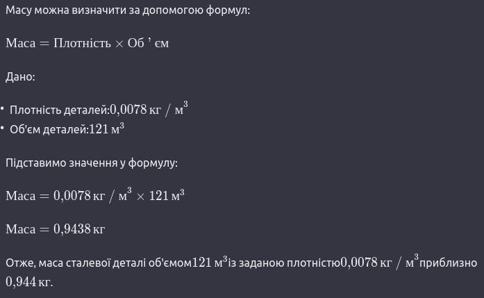 3. кг/м3. Определите массу стальной детали объёмом 121 м3, когда плотность детали 0, 0078 помогите пжжжжжжжжжжждам все свои баллы