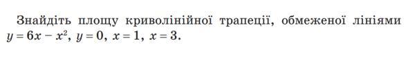 Знайдіть площу криволінійної трапеції , обмеженої лініями y=6x-x^2 y=0 x=1 x=3