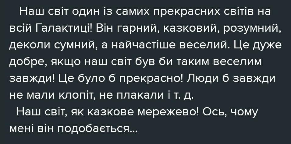 Твір на тему "Світ якій мереживо казкове" Надо не сильно много писать хотяби нам сказали половину страници.