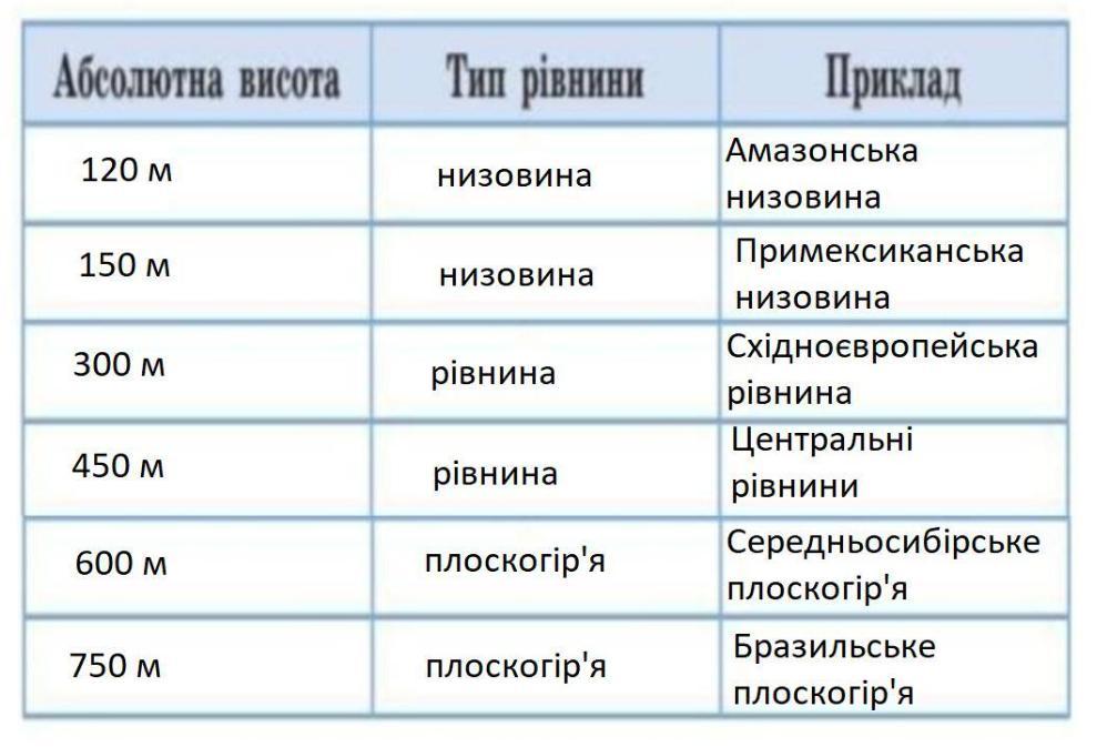 Рівнини - це великі відносно рівні ділянки земної поверхні з незначними коливаннями висот.