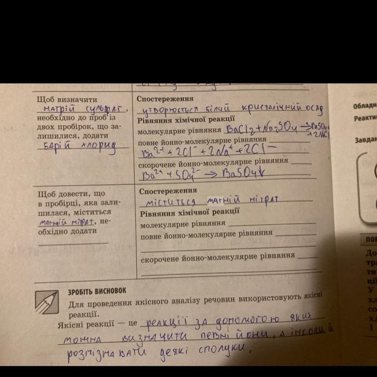 Якісні реації - це реакції за допомогою яких визначають наявність йонів у розчині, результат якісної реакції зміна кольору індикатора, утворення осаду, газу, води.