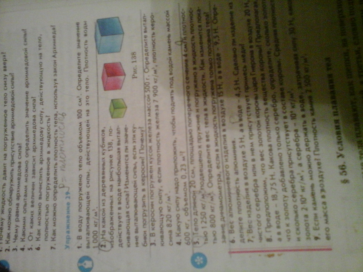 Наибольшая сила подействует на большой кубик. Да, в керосине выт. сила измениться потому что его плотность меньше чем у воды.