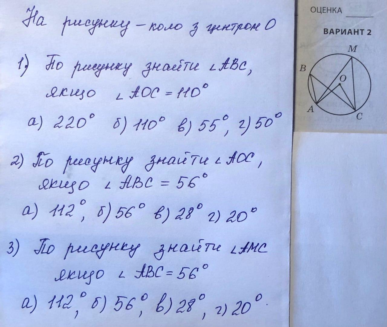 аналогічно, центральний кут вдвічі більше вписаного, якщо вони спираються на одну душу. 56*2=112
