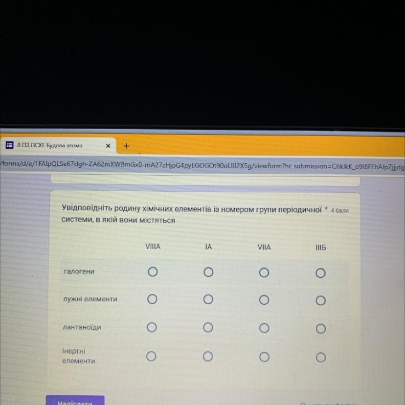 Увiдповiднiть родину хiмiчних елементiв iз номером групи перiодичноï
