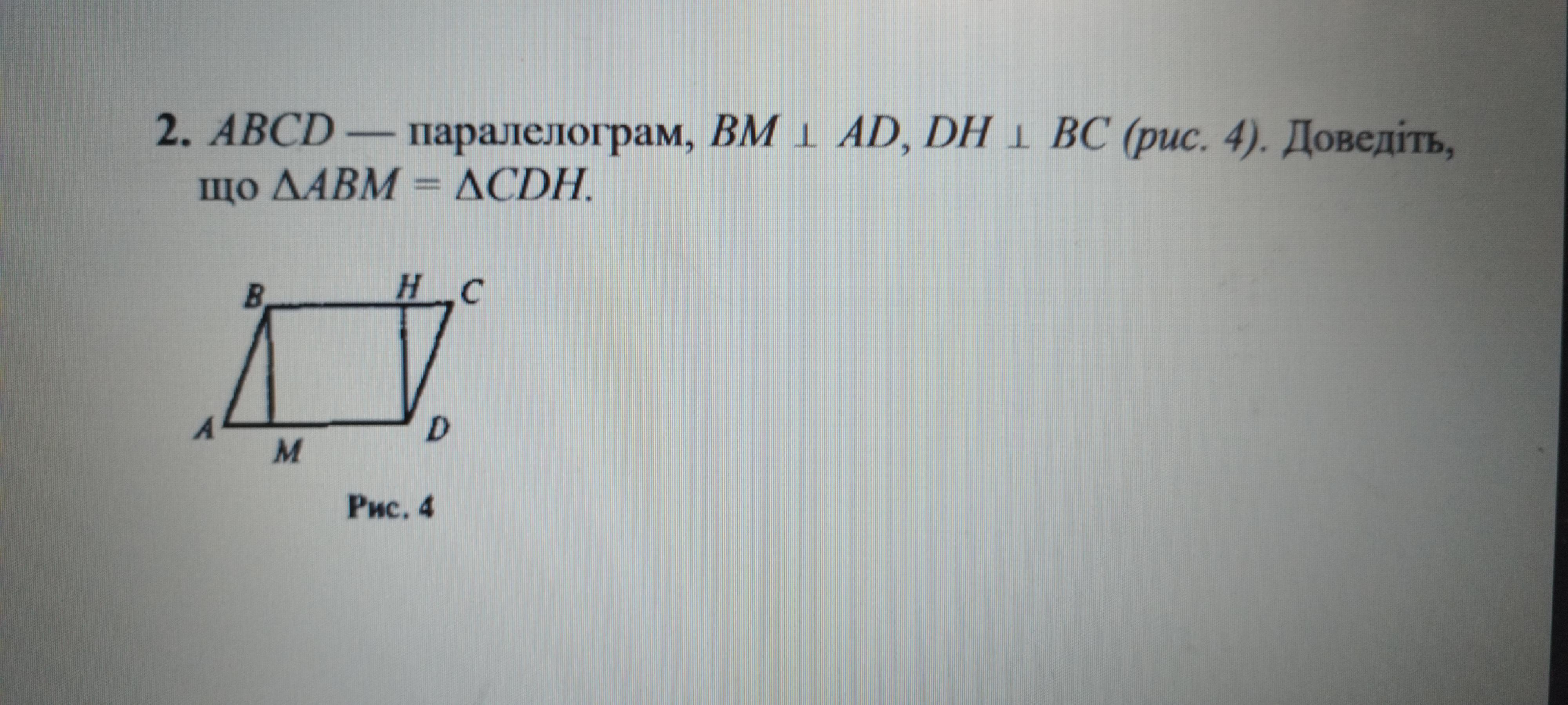 ΔАВМ=ΔСDН по катету та гіпотенузі. Доведено