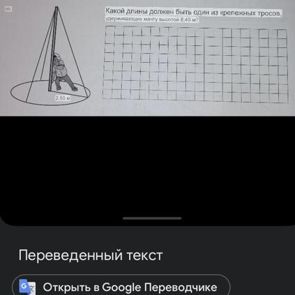 Однак для точного розрахунку потрібно знати значення кута нахилу мачти (θ). Якщо у вас є ця інформація, вам варто підставити значення тангенса кута в формулу для знаходження довжини кріпильного тросу.
