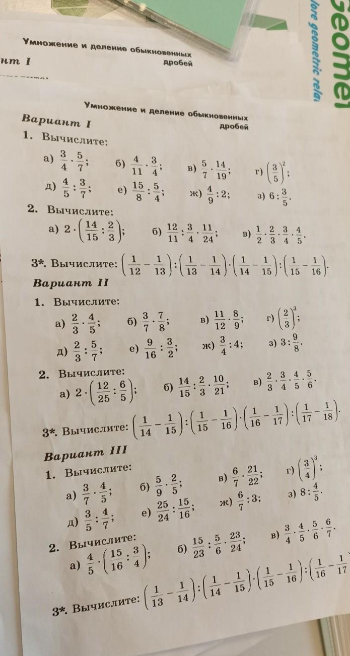 ПОЖАЛУЙСТА ПОМОГИТЕ СРОЧНО!!! Математика проверочная работа Умножение и деление обыкновенных дробей. Вариант 1, 1-2 номер.