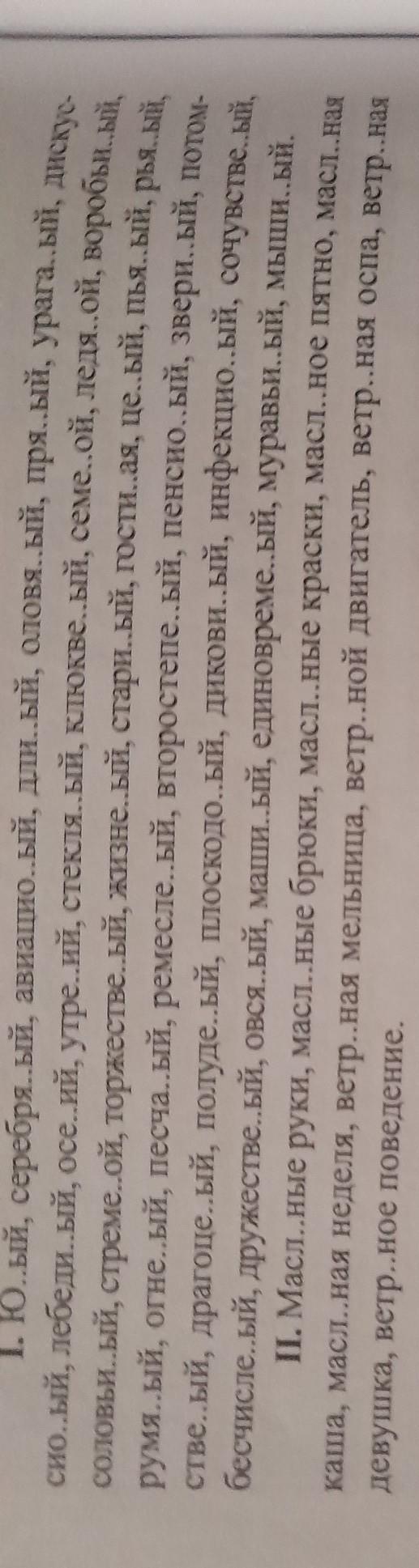 1. Юный, серебряный, авиационный, длинный, оловянный, пряный, ураганный, дискуссионный, лебединый, осенний, утренний, стеклянный, клюквенный, семенной, ледяной, воробьиный, соловьиный, стремительный, торжественный, жизненный, старинный, гостинная, цветной, пьяный, рьяный, румяный, огненный, песчаный, ремесленный, второстепенный, пенсионный, звериный, потомственный, драгоценный, полуденный, плоскодонный, диковинный, инфекционный, сочувственный, бесчисленный, дружественный, овсяный, машинный, единовременный, муравьиный, мышиный.