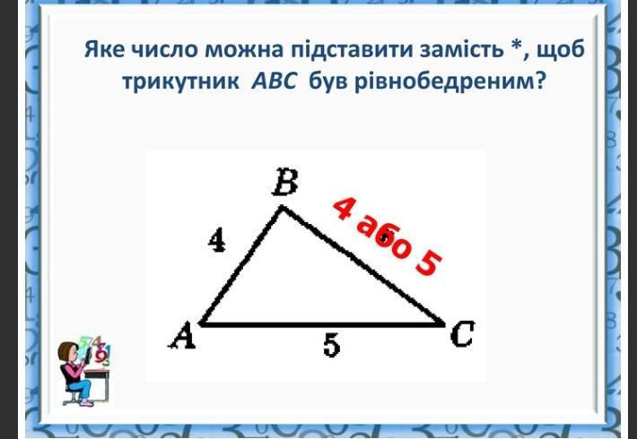 Можно ставити і 4 та 5 ,бо рівнобедренний два ребра тобто бічні сторони рівні і не важливо які вони