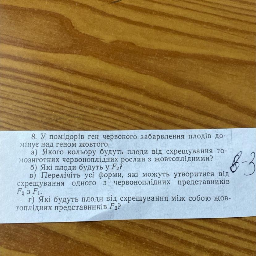 Г)Якщо жовтоплідні представники мають гени для жовтого кольору плодів (ff), то всі їх нащадки також матимуть жовті плоди. Таким чином, плоди від схрещування між собою жовтоплідних представників Fz також будуть мати жовтий колір.