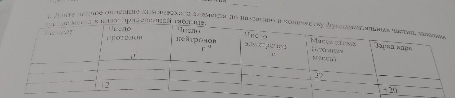 4. Дайте полное описание химического элемента по названи пустые места в ниже приведенной таблице. омогите срочно даю 50б!!!