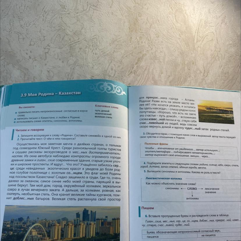 Объяснение:Осуществилась моя заветная мечта о далёких странах, о пальмахпод созвездием Южный Крест. Среди разноязычной толпы туристовя слушаю рассказы экскурсоводов о местных достопримечатель-ностях. Из окна автобуса наблюдаю контрасты огромного города:древние замки и гигантские современные здания, старые узкие улоц-ки и широкие проспекты. И вдруг Что это? Учащëнно забилосьце: среди невиданных экзотических красот я увидела до боли род-ное голубое полотнище с золотым солнцем. Это флаг моей Родинынад посольством Казахстана! Сладко защемило в груди. Где-то, оченьдалеко за океаном, самое синее небо моей страны, парящий в вы-шине беркут. Там мой дом, город, окружённый холмами, зеркальноеозеро в лучах вечернего заката. А дальше, за холмами, ровная, какскатерть, необъятная степь. Она хранит великие тайны курганов, пом-нит доблестных батыров. Великая степь распахнула свой простор