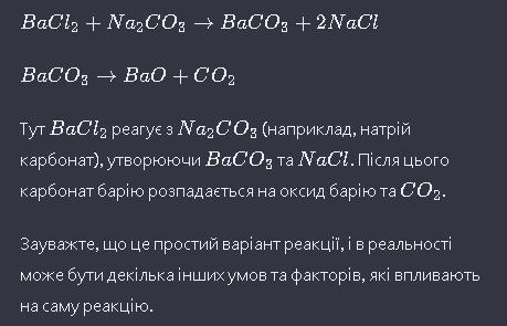 Хімічна реакція між хлоридом барію (BaCl₂), карбонатом барію (BaCO₃) та оксидом барію (BaO) може виглядати наступним чином: