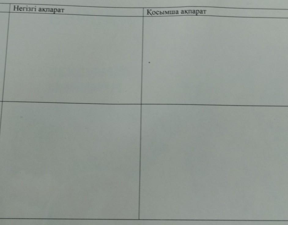 ЛЕГКИЕ 20б Помогите и получитеp/c 1 Мәтінді оқы. Тапсырмаларды орында. XXI ғасырды электр құрылғыларынсыз елестете алмаймыз. Сондыктан тұрғындардын емір келеді. Тұтынушыларды электр энергиясымен толык камтамасыз ету әлемдегі басты мәселеге - электр энергиясы. Жыл сайын оған деген сұраным артып айналды. Электр энергиясын ендіру үшін күнiне мындаган тонна кемiр мен суруі үшін керекті куат көзінің бірі Мұндай отыннын табигатка зияны ете көп. Пайдалы қазбалар азайып, ауа мен су ластанып, орман кесіліп жатыр. Қазір бүкіл әлем энергия өндірудің жаңа әдісі мен унемдеу жолын iздестiрiп жатыр. 2017 жылы Астанада «Болашак энергиясы >> деген такырыппен «ЭКСПО-2017» көрмесі өтті. Кермеде энергия өндірудің тиімді, арзан, табиғатқа зияны аз болатын жаңа технологиялары керсетiлдi. 1-тапсырма. Кестені толтыр. Мәтіннен 2 негізгі, 2 жана ақпаратты тауып жаз. [46] Негiзгi акпарат Косымша акпарат Окылым.