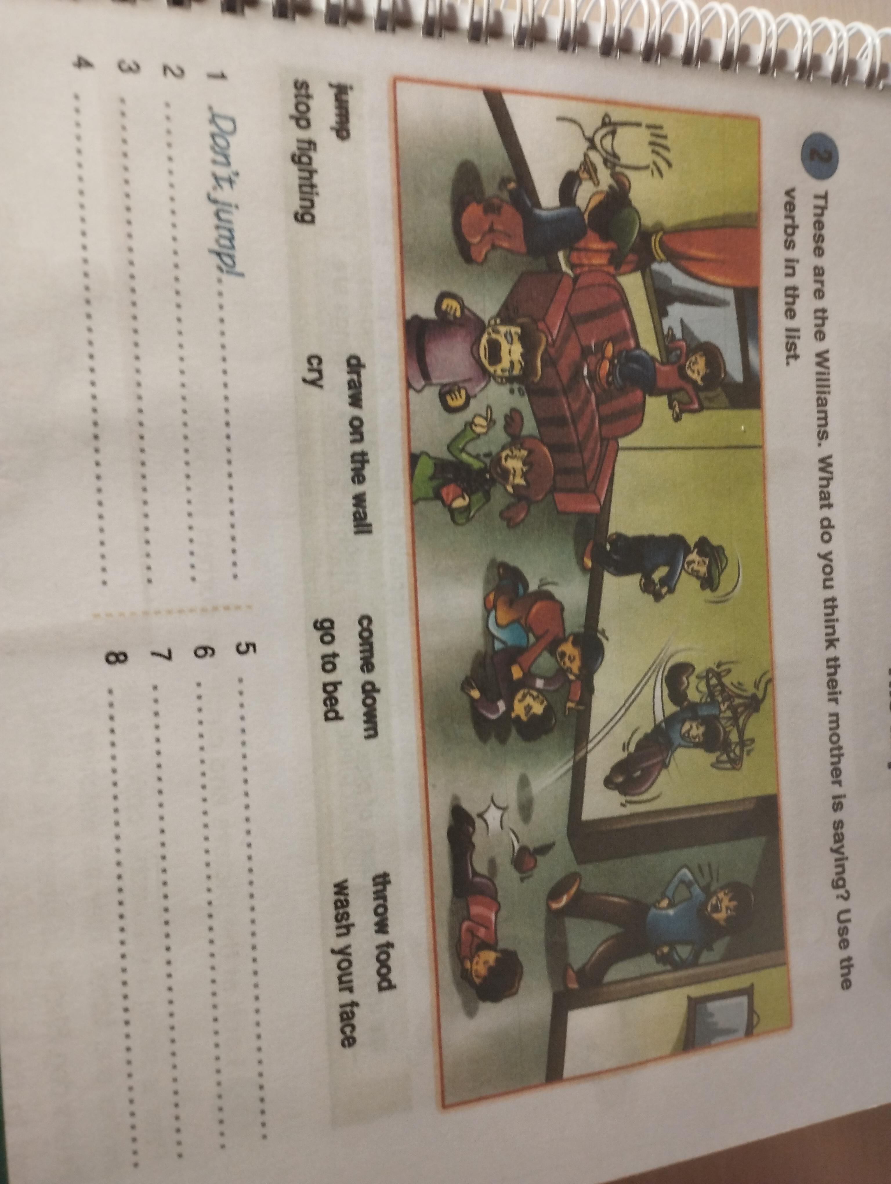 These are the Williams. What do you think their mother is saying? Use the verbs in the list.