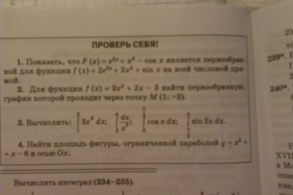 2. Для функции f(x)=3x^2+2x-3 найти первообразную, график которой проходит через точку М(1:-2) А 3 и 4 видно.
