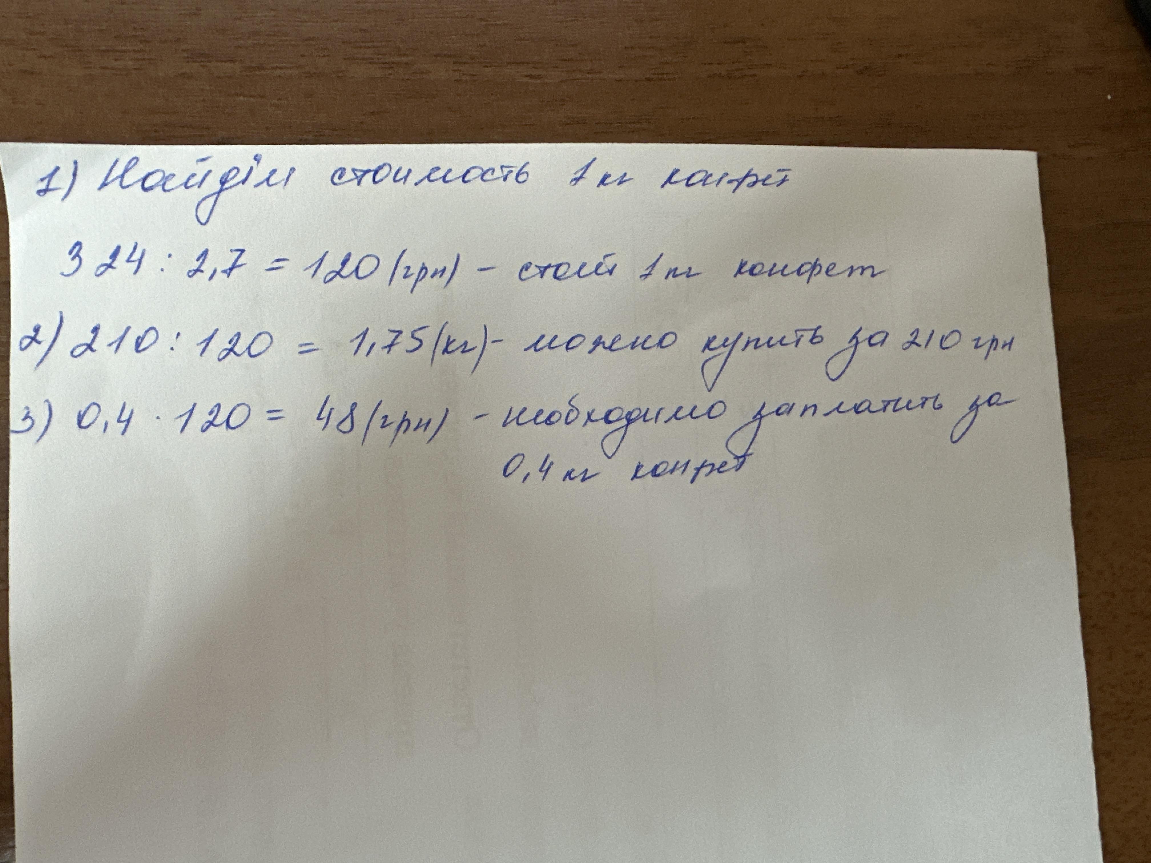 2) 210 : 120 = 1,75 (кг) - конфет можно купить на 210 грн