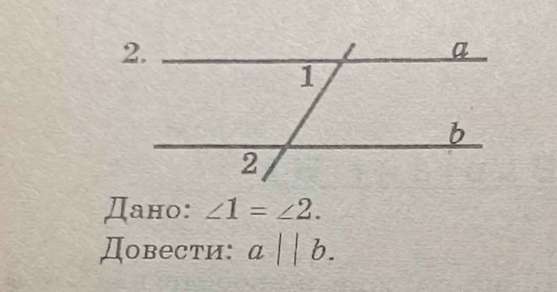 Третя пряма - січна (бо вона перетинає обидві прямі a та b). Утворені кути 1 і 2 називаються відповідними.
