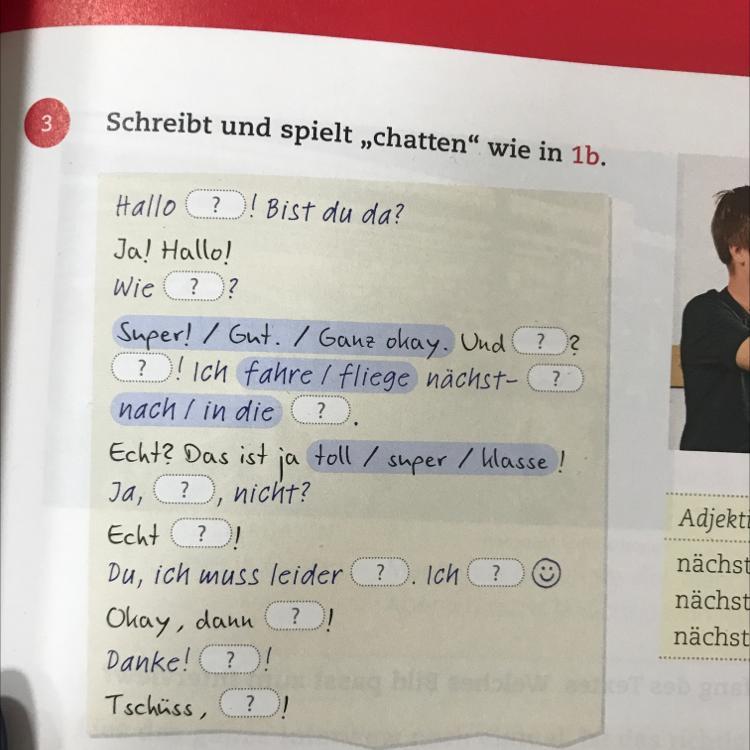 Hallo Lara! Bist du da? Ja! Hallo! Wie geht's? Ganz okay. Und du? Super! Ich fliege nächste Woche nach Frankreich. Echt? Das ist ja toll! Ja, kommst du, nicht? Echt komme ich! Du, ich muss leider wissen. Ich schreibe dir! Okay, dann bis morgen! Danke! Bis morgen! Tschüss!